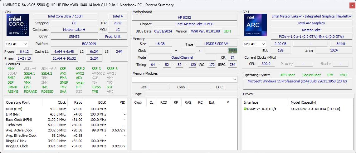 | 87.2 % | v8 | 08-2024 | HP EliteBook x360 1040 G11 Ultra 7 165H, Arc 8-Core | 1.5 kg | 14.7 mm | 14.00" | 1920x1200 | |