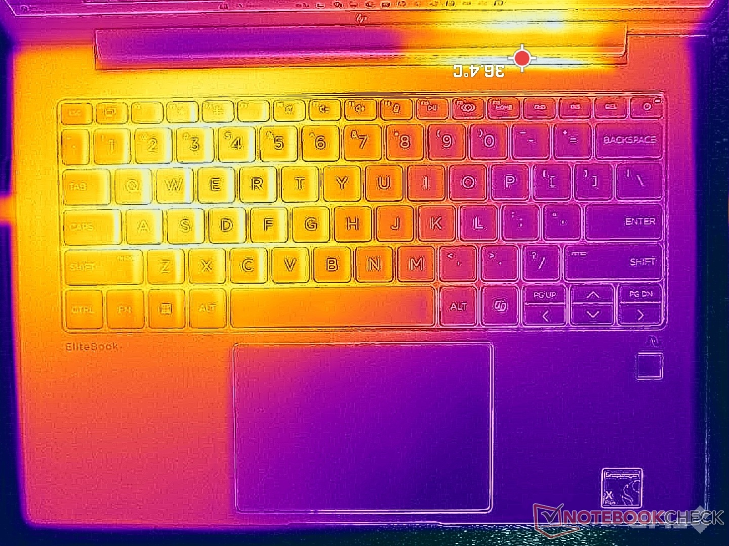 Ondanks het feit dat dit een van de goedkopere EliteBook-modellen is, voelt het systeem nog steeds geweldig aan om op te typen, met bevredigende feedback en beweging voor elke toets. De toetsenborden op duurdere modellen zoals de EliteBook Ultra G1q hebben toetsenborden van hogere kwaliteit met een iets andere indeling voor de pijltjestoetsen.