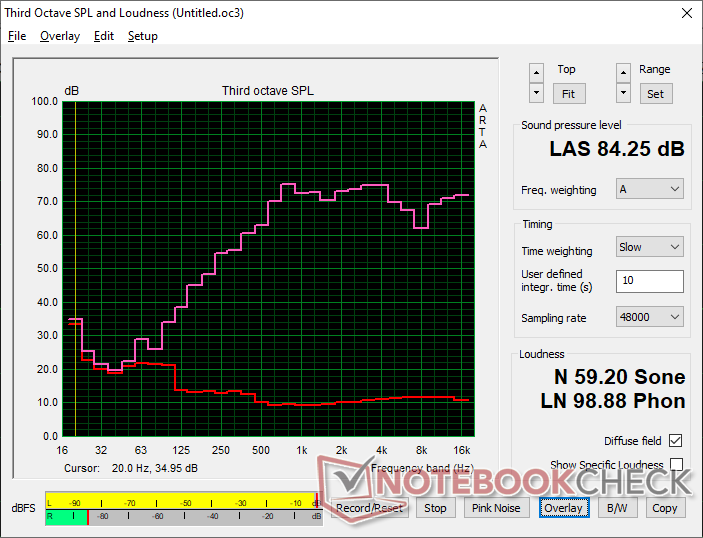 (+) | luidsprekers kunnen relatief luid spelen (84.3 dB)