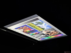 Deze optie biedt volledige sRGB-kleuren, maar met relatief trage zwart-witreactietijden, geen fabriekskleurkalibratie en slechts een vernieuwingsfrequentie van 60 Hz. Touchscreen-opties zijn beperkt tot het goedkopere 300-nit paneel, terwijl het superheldere paneel alleen gebonden is aan Sure View. Voor basis browsen, streamen en amateurbeeldbewerking is ons 400-nit paneel met sRGB-kleuren echter voldoende.