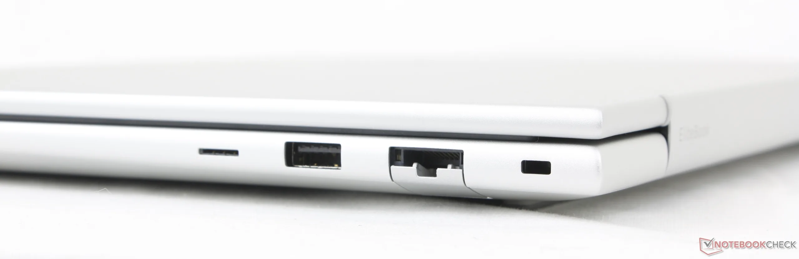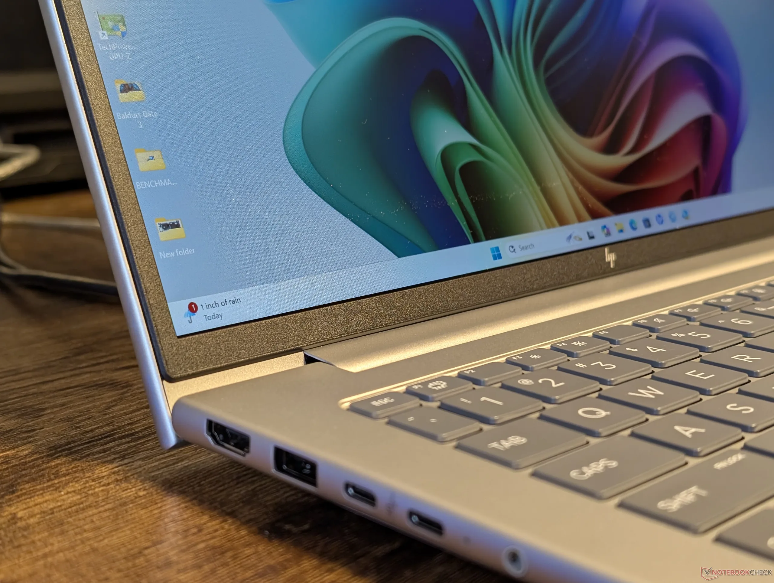 Er is een indrukwekkend aantal geïntegreerde poorten voor dit EliteBook-model op instapniveau. HDMI, RJ-45 en meerdere USB-A poorten zijn allemaal aanwezig, terwijl de veel duurdere EliteBook Ultra G1q veel van deze nietjes mist.
