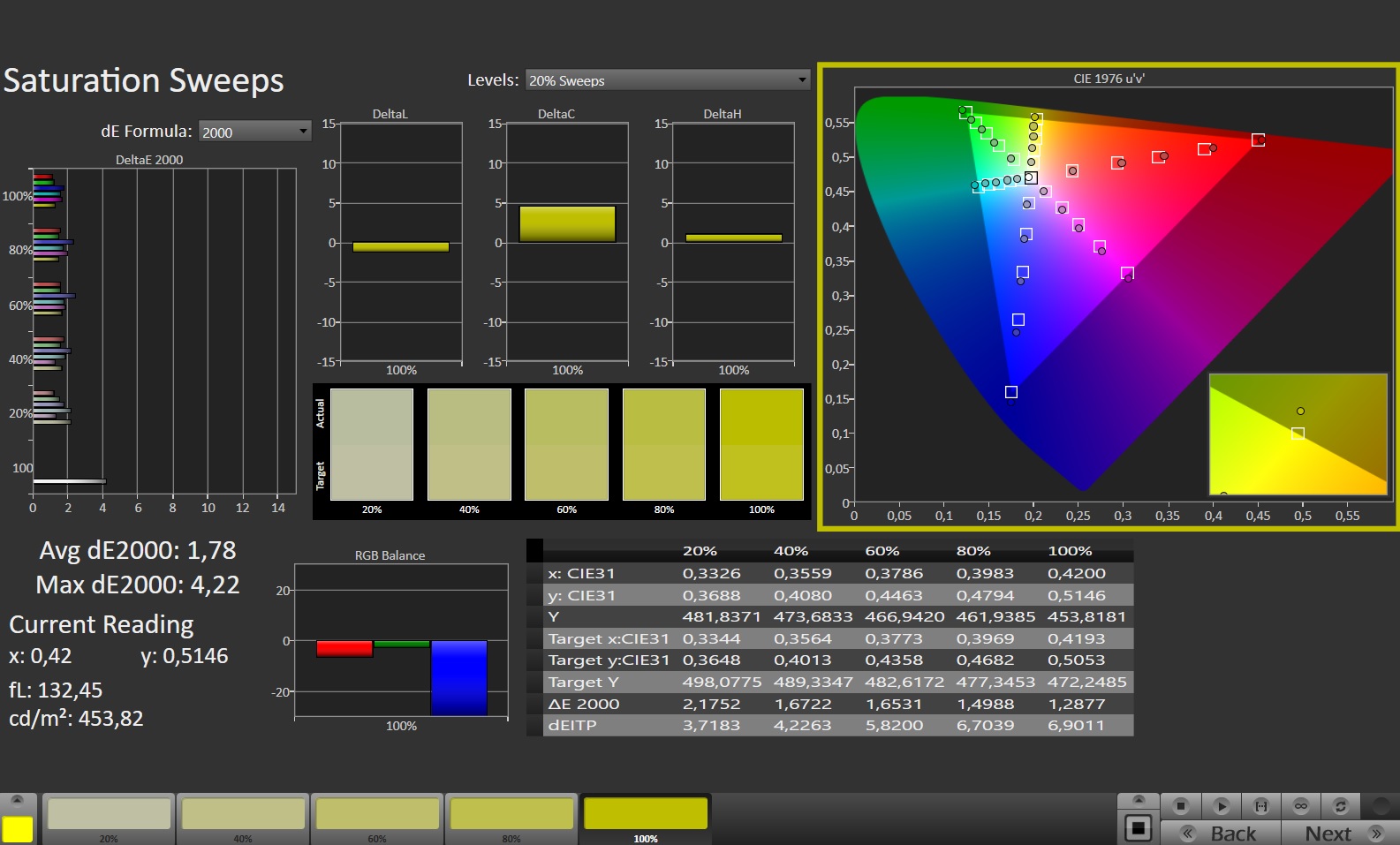 ΔE ColorChecker Calman: 1.76 | ∀{0.5-29.43 Ø4.78}
