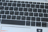 De concave, gladde toetsen van het verlichte chiclet-toetsenbord hebben een korte slag en een duidelijk drukpunt. De scherpe toetsweerstand is zeer aangenaam, en het toetsenbord geeft niet mee tijdens het typen. Een nadeel: De linker shift-toets en de pijltjestoetsen zijn vrij klein. De tweetraps achtergrondverlichting van de toetsen wordt geregeld via een functietoets. Al met al levert HP een toetsenbord dat geschikt is voor dagelijks gebruik.