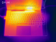 De notebook warmt merkbaar op. Temperaturen tussen 45 en 50 graden Celsius worden op bepaalde punten onder belasting bereikt. Bij dagelijks gebruik (kantoor, internet) vallen de cijfers in de groene zone.