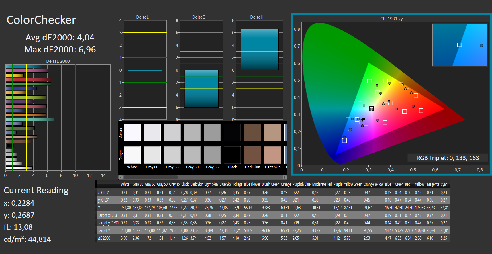 ΔE ColorChecker Calman: 4.1 | ∀{0.5-29.43 Ø4.78}