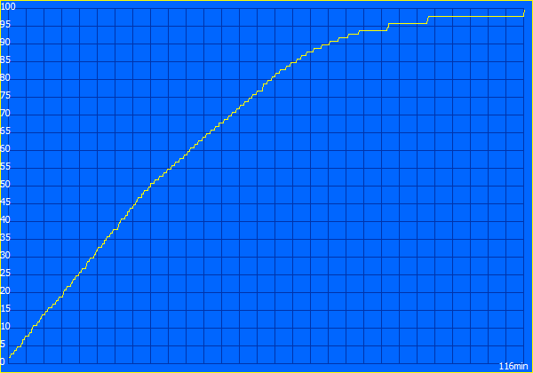 Het duurt ongeveer 2 uur om het toestel volledig op te laden wanneer het draait, maar slechts 32 minuten om 50 procent te bereiken.
