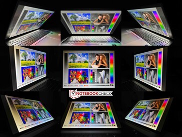 Ons testtoestel is uitgerust met het optionele Sure View-paneel, met een geïntegreerd privacyfilter. De algemene kenmerken (1920 x 1200 pixels, een mat oppervlak en tot 1000 cd/m² helderheid) zijn veelbelovend, maar er is nog veel meer om rekening mee te houden. De geïntegreerde privacyfilter kan met een druk op de knop worden geactiveerd, maar zelfs als deze is uitgeschakeld, zijn de kijkhoeken zeer beperkt - de 'sweet spot' recht voor het scherm waar de beeldkwaliteit niet wordt verminderd, is zeer smal. Zelfs kleine bewegingen kunnen leiden tot een merkbaar lager contrast en helderheid. Heldere inhoud verschijnt ook enigszins korrelig op het matte paneel. Helderheidsregeling is een ander groot probleem. Sure View werkt alleen bij de laagste helderheidsniveaus. Dit leidt tot twee problemen: Sure View is moeilijk te gebruiken in een lichte omgeving (bijvoorbeeld in de trein of in openbare ruimtes) en het moet in een omgeving met weinig licht worden geactiveerd om op het laagst mogelijke helderheidsniveau te komen. Wij hebben de waarden in de volgende tabel opgesomd: