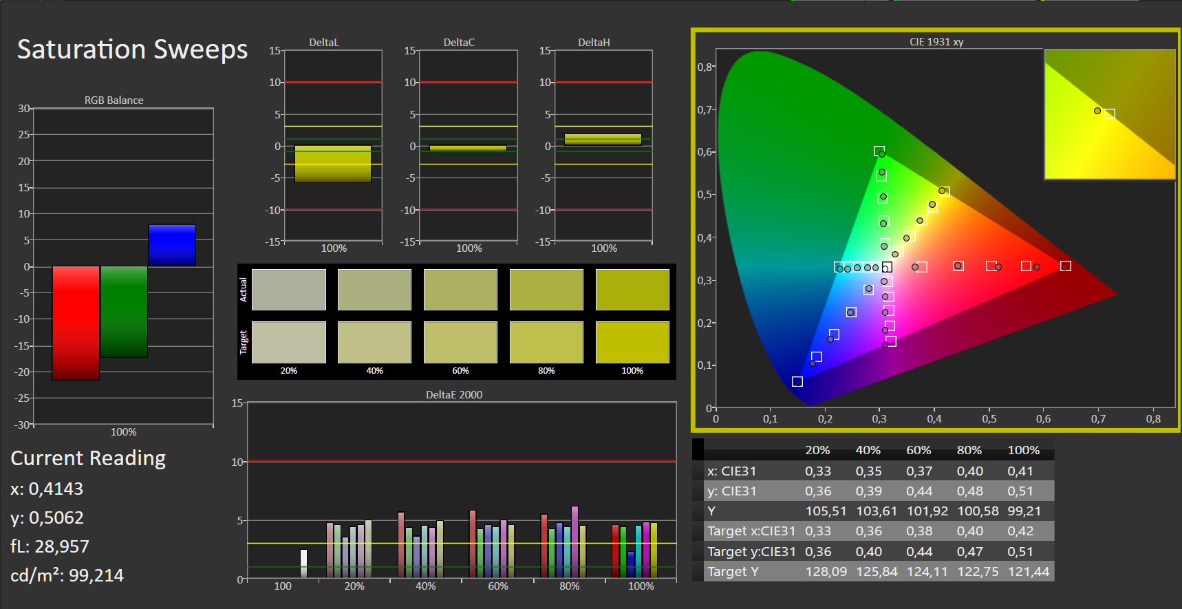 ΔE Greyscale Calman: 3.99 | ∀{0.09-98 Ø5}