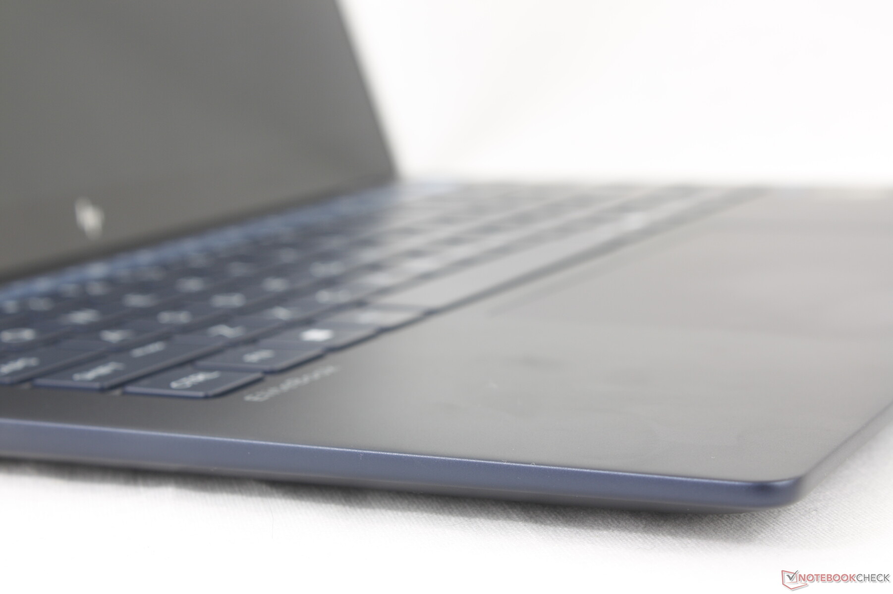 De toetsenbordindeling lijkt meer op die van de Dragonfly Pro dan op die van de EliteBook 845 vooral wat betreft de toetsgrootte en het lettertype. Het toetsenbord voelt erg oppervlakkig aan, inclusief de spatiebalk- en entertoetsen, die meer feedback hadden kunnen krijgen.