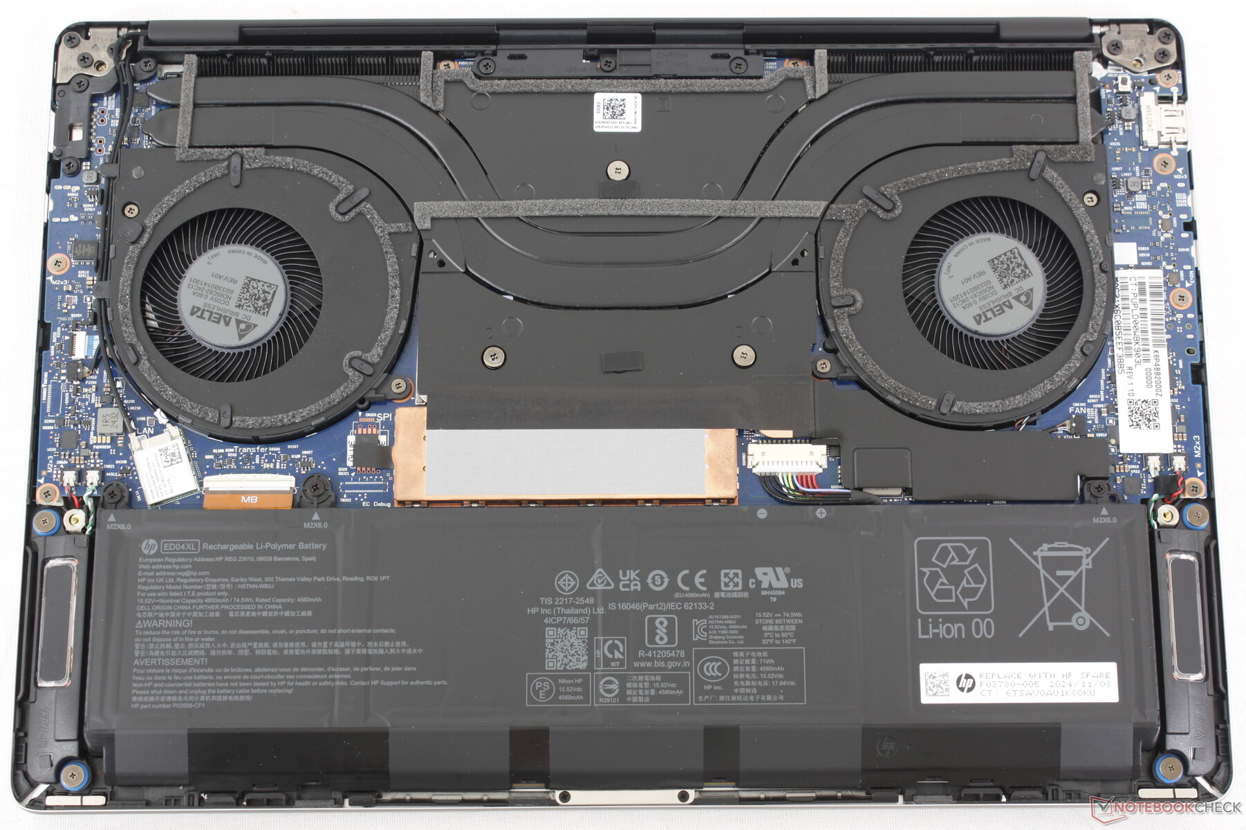 De batterijcapaciteit is groter dan voorheen, van 51 Wh op de EliteBook 1040 G10 tot 75 Wh op onze EliteBook X G1a 14. Hierdoor is de WLAN werktijd met enkele uren toegenomen tot iets meer dan 14 uur. Verwacht dat de zwaardere OLED-configuratie een paar uur korter zal zijn.