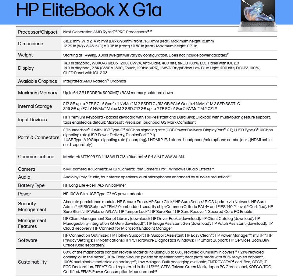 HP EliteBook X G1a: Prijzen en beschikbaarheid