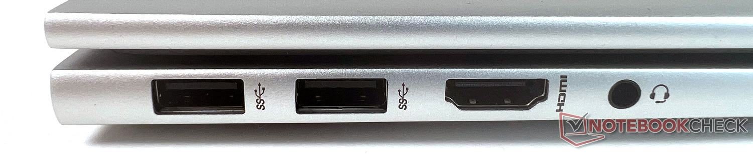 De Envy 17 biedt een uitgebreide poortuitrusting, met uitzondering van een LAN-poort. Inbegrepen zijn twee Thunderbolt 4-poorten met USB 4 Type-C voor gegevensoverdracht tot 40 Gbit/s, opladen en DisplayPort 1.4, met beide poorten aan de rechterkant gepositioneerd. In sommige situaties zou verdeling over beide zijden wenselijker zijn. Een van de Thunderbolt-poorten wordt gebruikt door de meegeleverde lader voor de stroomvoorziening.