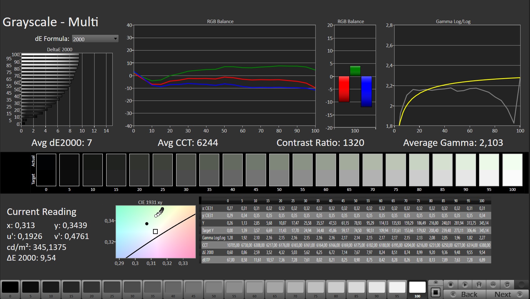 ΔE Greyscale Calman: 7 | ∀{0.09-98 Ø5}