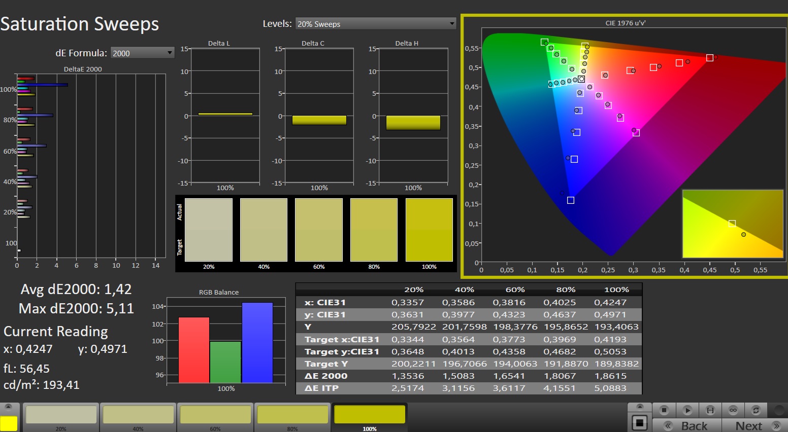 ΔE Greyscale Calman: 1.3 | ∀{0.09-98 Ø5}