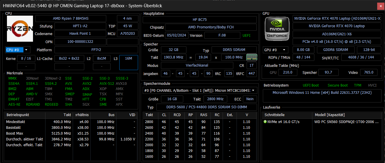 | 80.4 % | v8 | 07-2024 | HP Omen 17-db0079ng R7 8845HS, GeForce RTX 4070 Laptop GPU | 2.8 kg | 30.1 mm | 17.30" | 2560x1440 | |