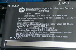 Maar zodra u de laptop probeert op te tillen - of wanneer u hem in ons geval direct uit de doos haalt - wordt het duidelijk dat HP zeker niet bespaard heeft op het gebruik van massieve onderdelen binnenin. Het gewicht ligt niet ver van de 3-kg grens (~6.6 lb), hoewel de basis onaangetast blijft als u hem aan slechts één voorste hoek optilt. Alles blijft stijf en strak.