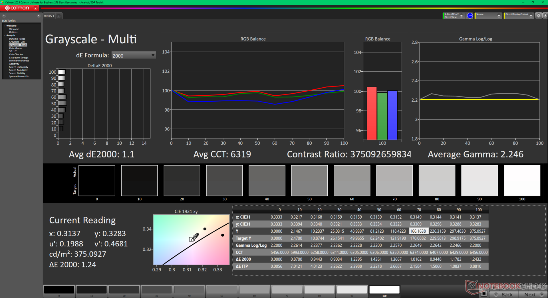 ΔE Greyscale Calman: 1.1 | ∀{0.09-98 Ø5}