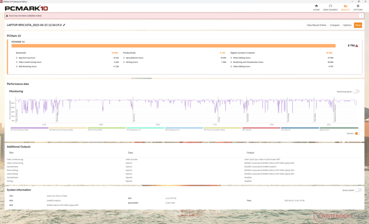 Hoe snel de Arrow Lake HX CPU ook is, hij is mogelijk te snel voor de Omen Max 16 om aan te kunnen. De kerntemperatuur onder belasting of tijdens het gamen ligt ruim boven de 90 C, terwijl de kloksnelheden consistent langzamer zijn dan dezelfde processor op de eerder genoemde Legion Pro 7i 16. De achterstand is misschien klein, maar enthousiastelingen die elke druppel prestatie willen, geven daarom misschien de voorkeur aan de Lenovo of aan een ander model met koelere maar langzamere CPU-opties.