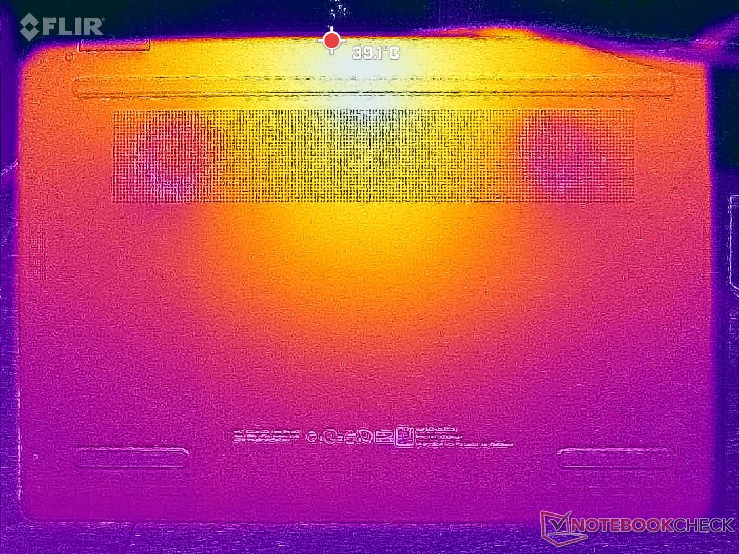 Hete plekken bereiken meer dan 35 C tot 37 C op respectievelijk het toetsenbord en de onderkant, vergeleken met 40 C tot 45 C op de Elite x360 1040 G11.