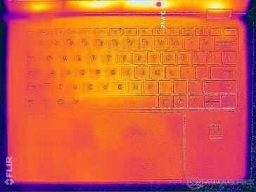 (+) Bij onbelast gebruik bedraagt de gemiddelde temperatuur voor de bovenzijde 24.2 °C / 76 F, vergeleken met het apparaatgemiddelde van 30.3 °C / 87 F.