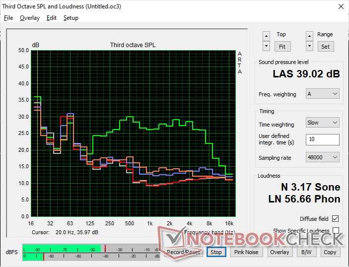 (+) | het totale geluid is lineair (11.6% verschil met de mediaan)