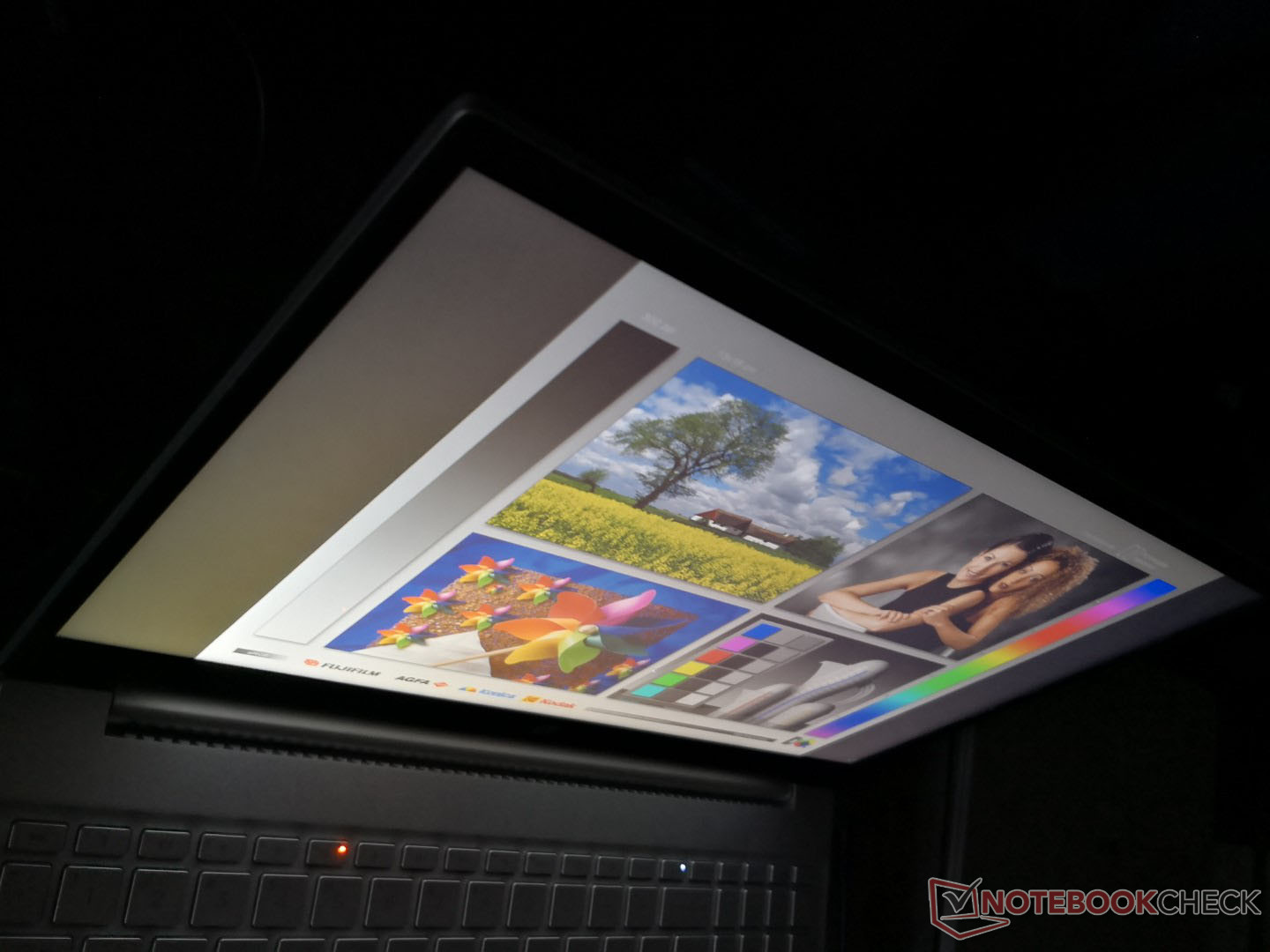 Het beeldscherm is zowel goed als teleurstellend. Het is goed in die zin dat de contrast ratio relatief hoog is voor een budget laptop met meer dan 1000:1 en dat beelden scherp zijn door de glanzende overlay. De responstijden zijn ook fatsoenlijk voor minder ghosting bij het spelen van games. Helaas zorgen de teleurstellend zwakke achtergrondverlichting en beperkte kleuren ervoor dat het scherm niet in alle opzichten uitmuntend is. Verwacht wat schittering, zelfs binnenshuis.