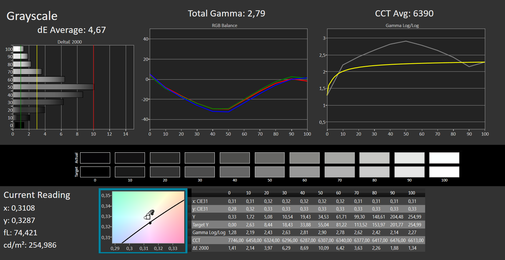 ΔE Greyscale Calman: 4.67 | ∀{0.09-98 Ø5}