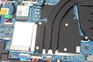 Er is geen onderhoudsluik, dus de grondplaat moet worden verwijderd om bij de interne componenten te komen. Vergeleken met eerdere Spectre-modellen is de demontage vrij eenvoudig, omdat er geen schroeven verborgen zitten onder de rubberen strips aan de onderkant van het apparaat. Alleen de vier zichtbare schroeven moeten worden verwijderd. Daarna kan de onderkap worden verwijderd met behulp van een platte spatel. We raden aan te beginnen met de scharnieren. Eenmaal geopend heb je toegang tot de SSD (PCIe 3), de WLAN-module, de ventilatoren, de luidsprekers en de batterij.