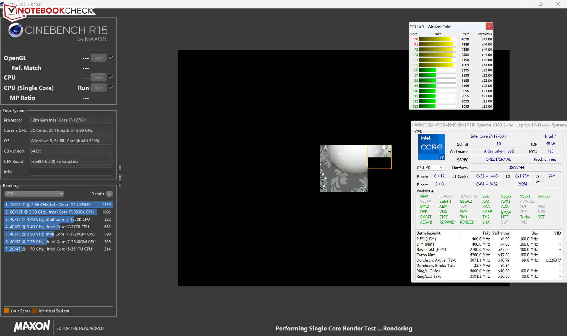 | HP Spectre x360 2-in-1 16-f1075ng i7-12700H, Iris Xe G7 96EUs, SK Hynix PC711 1TB HFS001TDE9X073N, IPS, 3072x1920, 16" | MSI Summit E16 Flip A12UDT-031 i7-1280P, GeForce RTX 3050 Ti Laptop GPU, Samsung PM9A1 MZVL22T0HBLB, IPS, 2560x1600, 16" | Lenovo Yoga 7 16IAP7 i7-1260P, Iris Xe G7 96EUs, Micron 2450 512GB MTFDKCD512TFK, IPS, 2560x1600, 16" | Dell Inspiron 16 7620 2-in-1 i7-1260P, Iris Xe G7 96EUs, Toshiba KBG40ZNS512G NVMe, IPS, 1920x1200, 16" | LG Gram 16 2-in-1 16T90P i7-1165G7, Iris Xe G7 96EUs, SK Hynix PC401 512GB M.2 (HFS512GD9TNG), IPS, 2560x1600, 16" | Gemiddeld Intel Iris Xe Graphics G7 96EUs | Gemiddelde van klas Convertible | |