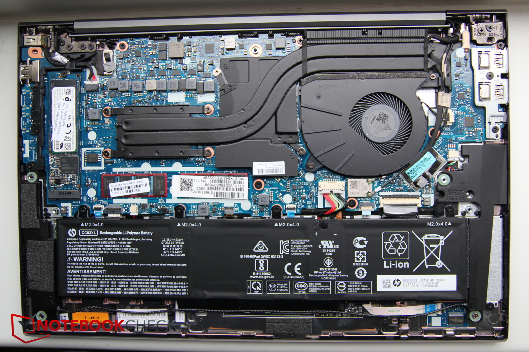 Het bodemdeksel wordt slechts met vijf kruiskopschroeven vastgezet en kan eenvoudig van het scharnier worden losgemaakt. U krijgt dan toegang tot de enkele ventilator, de batterij en de SSD. Alleen de RAM wordt gesoldeerd en kan niet worden geüpgraded; dit betekent dat u moet letten op de juiste hoeveelheid geheugen voordat u de laptop koopt.