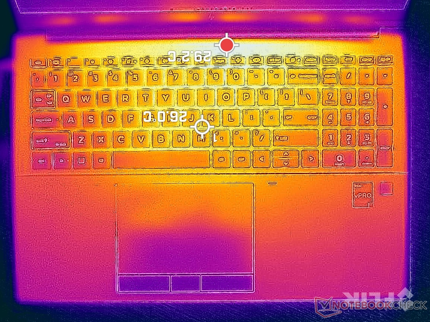 (+) Bij onbelast gebruik bedraagt de gemiddelde temperatuur voor de bovenzijde 30.6 °C / 87 F, vergeleken met het apparaatgemiddelde van 32 °C / 90 F.
