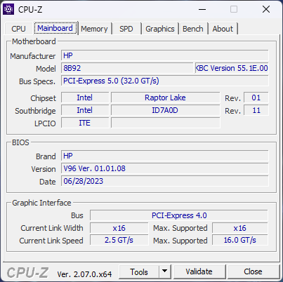 Het draaien in de Balanced modus vermindert de grafische prestaties. Bijvoorbeeld, GPU kloksnelheden en stroomverbruik bij Witcher 3 stabiliseren op respectievelijk 1845 MHz en 102 W, vergeleken met 1770 MHz en 94 W in de gebalanceerde modus. Hoe dan ook, het HP systeem bereikt hogere werkelijke TGP-waarden dan dezelfde GPU in de Precision 5680 waar deze slechts 72 W is.
