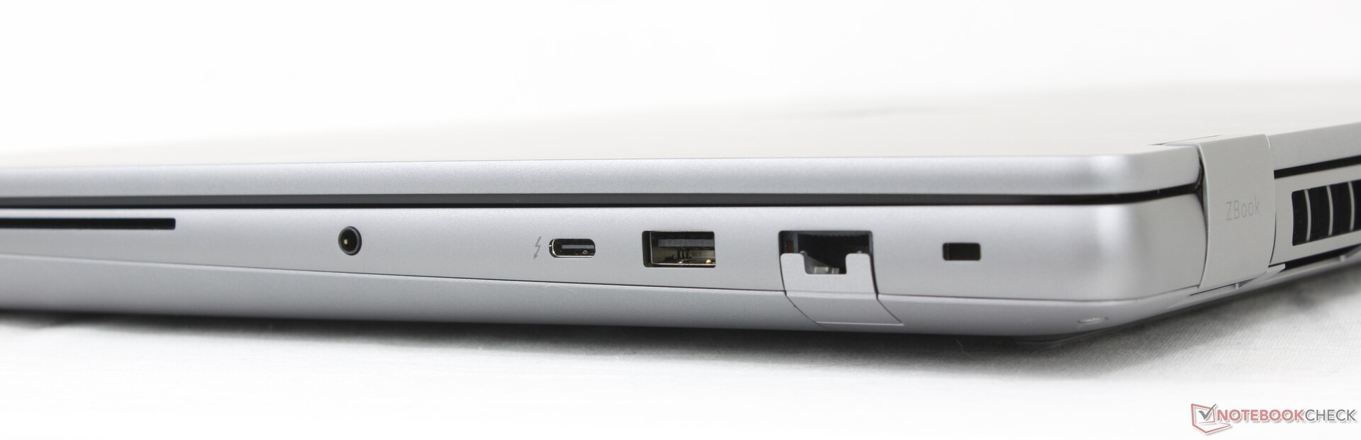 Het model beschikt over alle poorten van de Dell Pro Max 18 Plus, maar met één USB-A poort minder. Onze grootste klacht is dat de twee USB-C poorten langs de linkerrand te dicht bij de poort voor de AC-adapter zitten. Het aansluiten van meerdere kabels kan hierdoor krap zijn.
