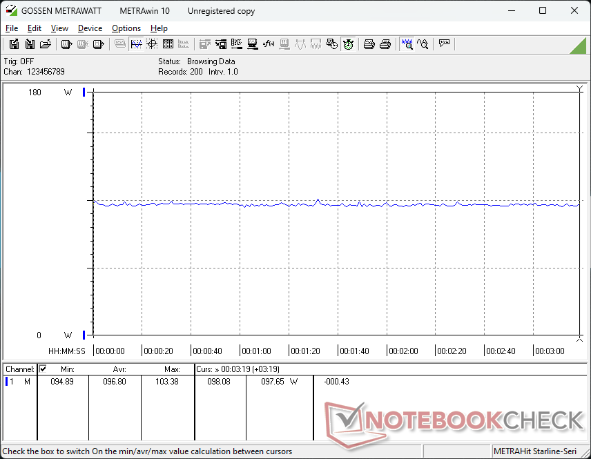 Verbruiksniveaus en gedrag zijn vergelijkbaar met wat we hebben waargenomen op de ZBook Power 15 G10, wat niet verwonderlijk is aangezien de energie-enveloppe hetzelfde blijft. Het meest opvallende verschil is misschien wel het lagere verbruik van ongeveer 25 W bij het gelijktijdig uitvoeren van Prime95 en FurMark. Dit kan worden toegeschreven aan de zwaardere throttling voor het koelen van de kerntemperaturen bij het uitvoeren van dergelijke belastingen, zoals vermeld in het gedeelte over de stresstest hierboven.