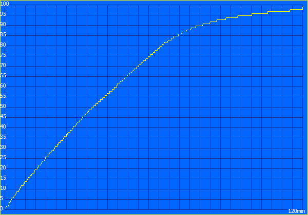 Een volledige acculading duurt 2 uur als het apparaat is ingeschakeld; 80% van de capaciteit is al na ongeveer een uur beschikbaar.