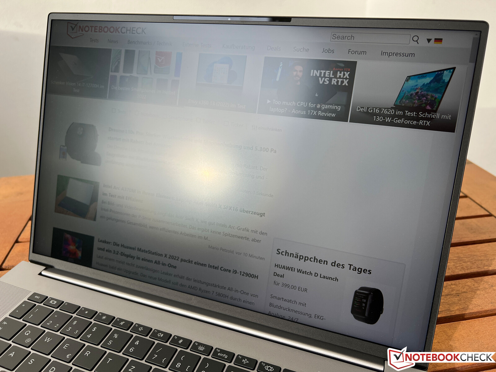 Ons recensieapparaat is uitgerust met het 4K DreamColor-paneel, dat een uitstekende subjectieve beeldkwaliteit biedt. Het matte scherm is slechts licht korrelig, zelfs op heldere oppervlakken, maar dit is niet merkbaar als je op een normale afstand zit. Tegelijkertijd is de inhoud extreem scherp en zijn de kleuren zeer levendig. We stelden een gemiddelde helderheid vast van goede cd/m², maar de zwartwaarde van 0,47 is erg hoog, wat resulteert in een fatsoenlijke contrastverhouding van "slechts" ~1.200:1.