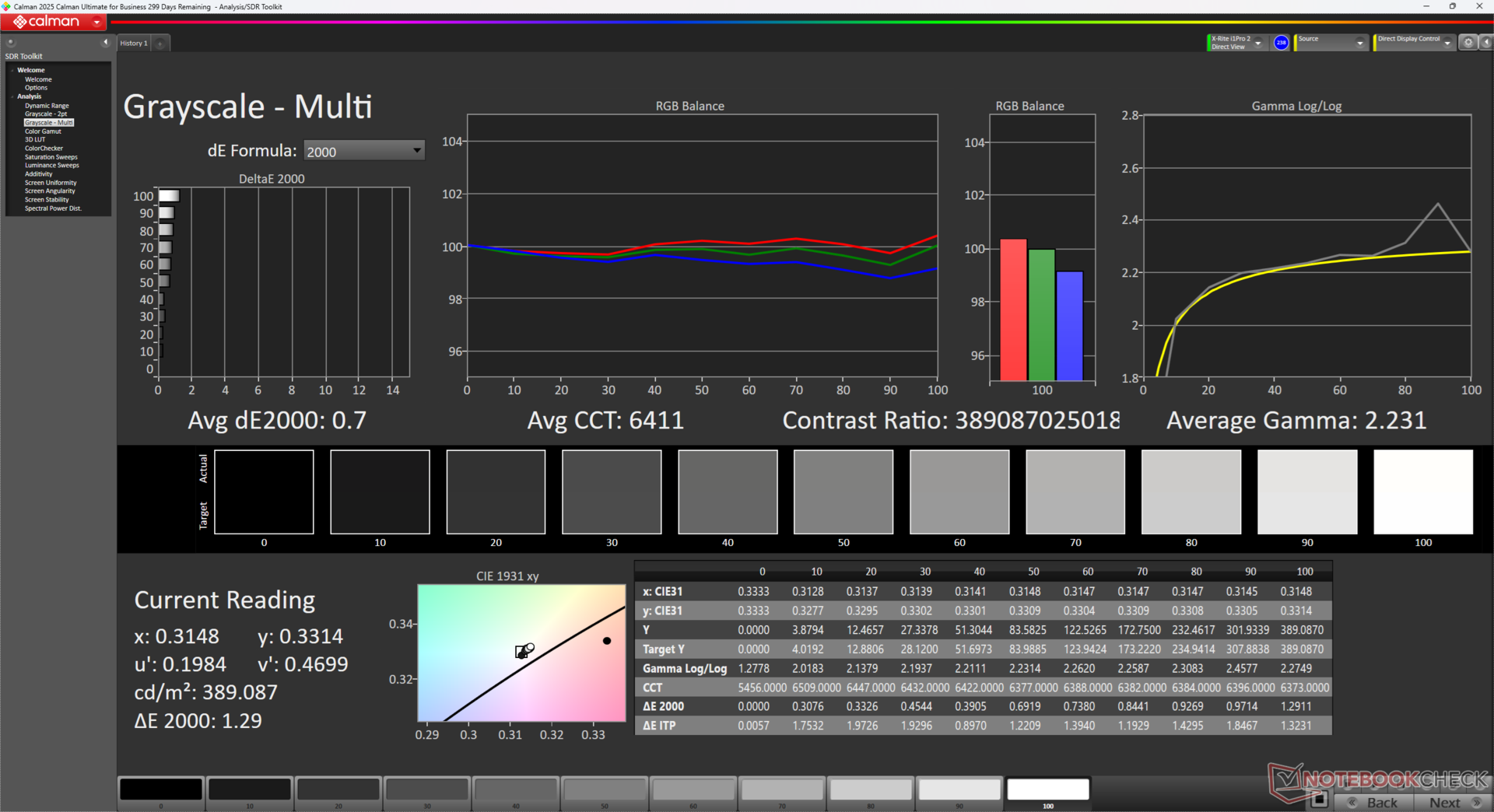 ΔE Greyscale Calman: 1 | ∀{0.09-98 Ø5}