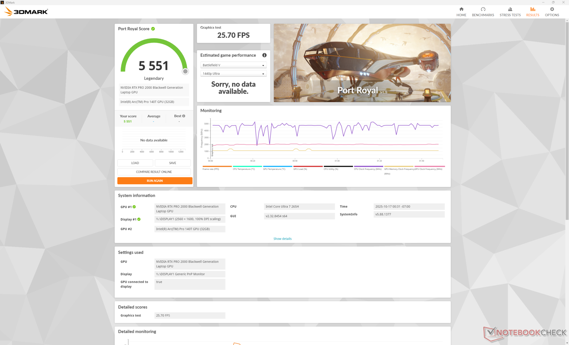 Onze testunit is de middelste configuratie met de Core Ultra 7 265H, 2K 1600p120 beeldscherm en RTX Pro 2000 GPU voor ongeveer 2700 USD. Een volledige lijst met beschikbare configuraties kunt u hier bekijken.