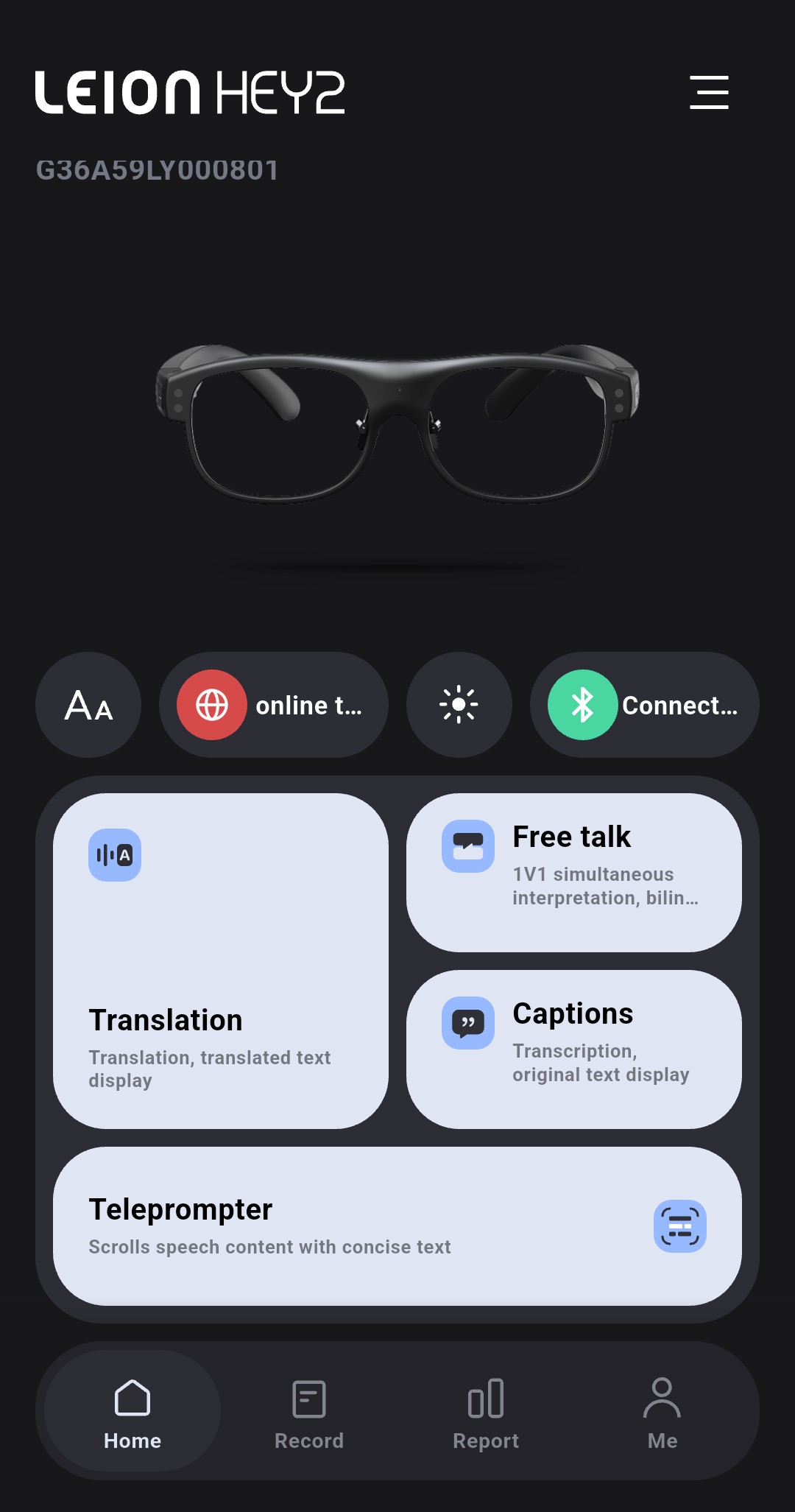 De Leion Hey 2 bril is ontworpen om spraak in real-time direct op de brillenglazen te transcriberen en te vertalen.
