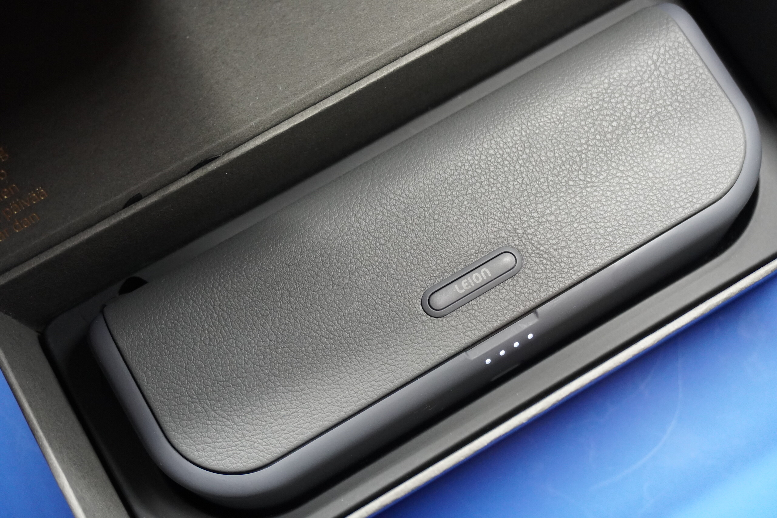 De Leion Hey 2 bril wordt geleverd in een mooie doos waarin alles goed op zijn plaats zit, en in het meegeleverde oplaaddoosje voor volledige weergave. Het apparaat dat wij ontvingen, werd geleverd zonder de lensinzetstukken, maar het ontbreken daarvan beperkte de functionaliteit niet. Naast de bril zelf, ontvangen gebruikers een oplaadkabel en extra neuskussentjes om uit te zoeken wat voor hen het beste werkt.