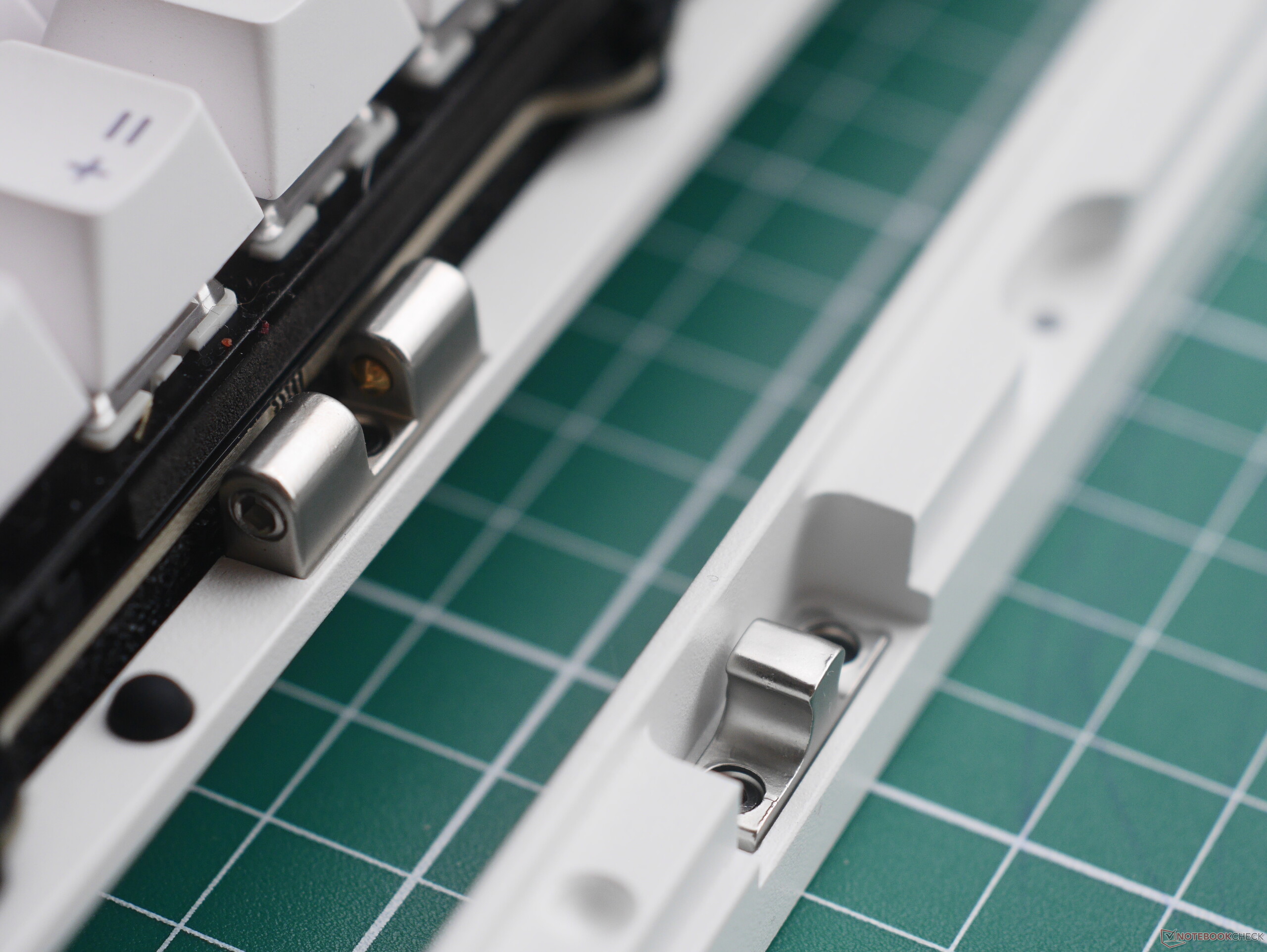 De quick-release sluiting (aka. ball-catch mechanisme) is een interessant ontwerp, en ondanks het feit dat het dezelfde interne schuimen heeft als de Lemokey L1 HE, vertoont de P2 HE een veel gedempter geluidsprofiel, en het elimineert veel van het top-out gekletter dat gebruikelijk is bij HE-schakelaars. Zoals we in eerdere reviews van toetsenborden met Gateron's Double-Rail Magnetic Nebula schakelaars hebben besproken, zijn ze buitengewoon soepel en stabiel, hoewel ze tijdens langere typesessies vermoeidheid kunnen veroorzaken als u gewend bent aan lichtere schakelaars.