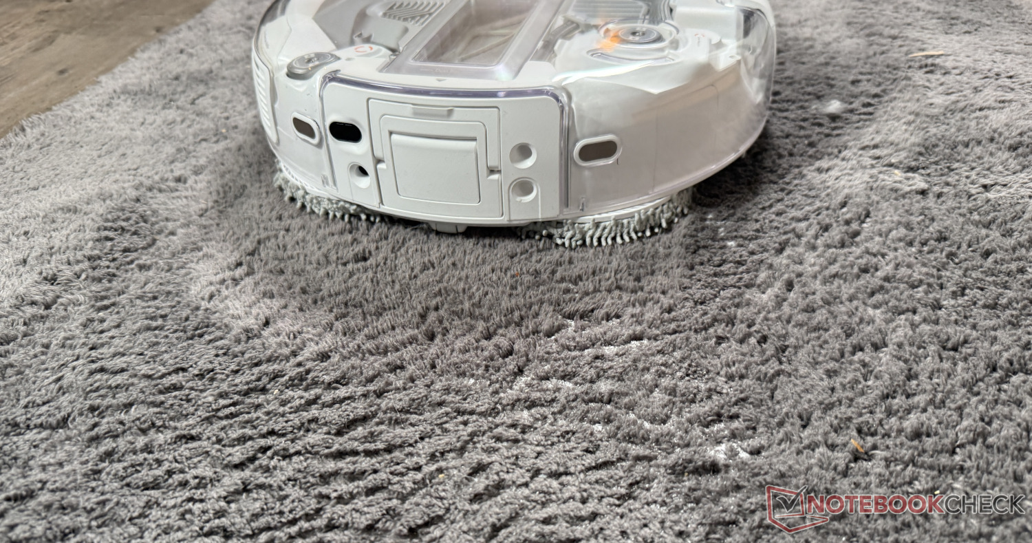 Met 25.000 Pa is de zuigkracht niet helemaal gelijk aan die van andere topmodellen, maar hij is nog steeds erg hoog. De fabrikant combineert twee zijborstels met een groot veegoppervlak, waarvan er één kan worden uitgeschoven voor het reinigen van hoeken en randen. Dit geldt ook voor een van de twee roterende, pluizige moppen aan de achterkant van de robot, die constant vochtig worden gehouden door een waterreservoir van 164 ml. De rolborstel is in twee delen verdeeld om te voorkomen dat de haren in de war raken. Er worden er in totaal twee meegeleverd: één met borstels en rubber voor tapijten en sterk vervuilde vloeren en een rubberen rolborstel die ideaal is voor lang haar en dierenharen.