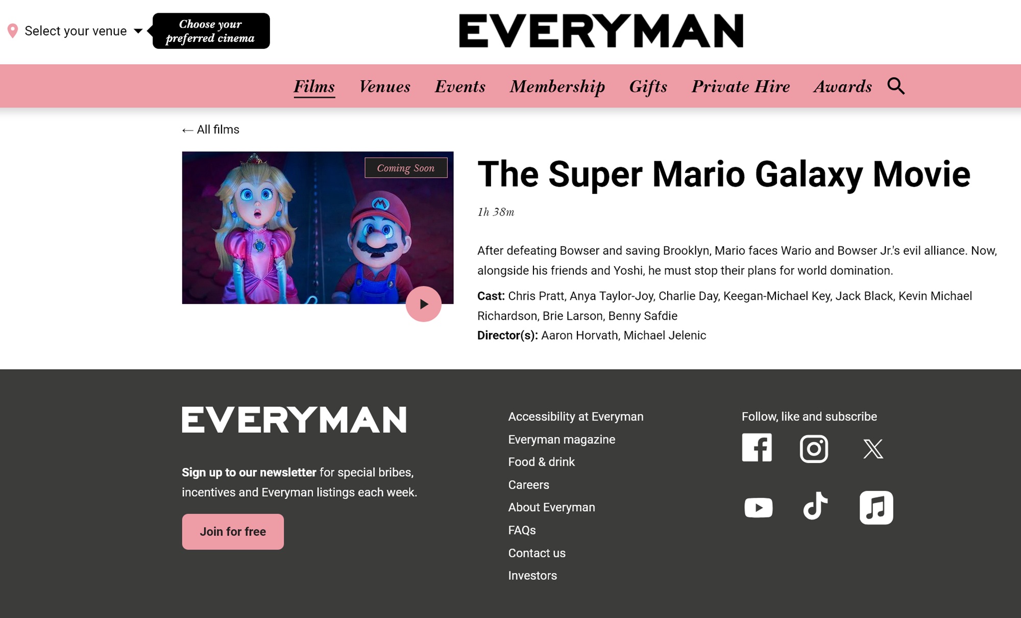 Het is discutabel of de bioscopen per ongeluk een Super Mario Galaxy Movie cast hebben gelekt. Everyman is echter een bedrijf dat geen reputatie van onnauwkeurigheid heeft. Beide bronnen kunnen zich gebaseerd hebben op informatie die Nintendo openbaar wil maken na een toekomstige promo trailer.
