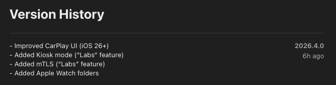 Home Assistant app versie 2026.4.0 bevat ook drie nieuwe functies. Eén daarvan is de Kiosk-modus, die gekoppeld lijkt te zijn aan de Fully Kiosk Browser integratie. Een andere is Mutual Transport Layer Security (mTLS), een vorm van authenticatie voor extra beveiliging. Dit zijn allebei "Labs"-functies, wat betekent dat ze nog getest worden, maar er zouden geen grote bugs in moeten zitten. Tot slot is er nu ondersteuning voor mappen in de Apple Watch app(Series 11 46 mm GPS curr. $359 bij Amazon).