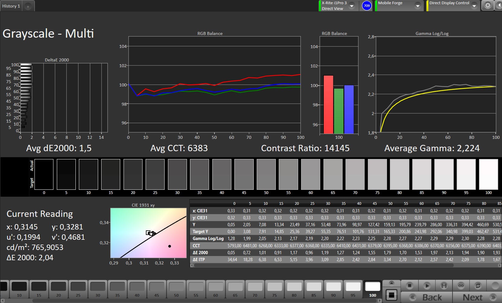 ΔE Greyscale Calman: 1.5 | ∀{0.09-98 Ø5}