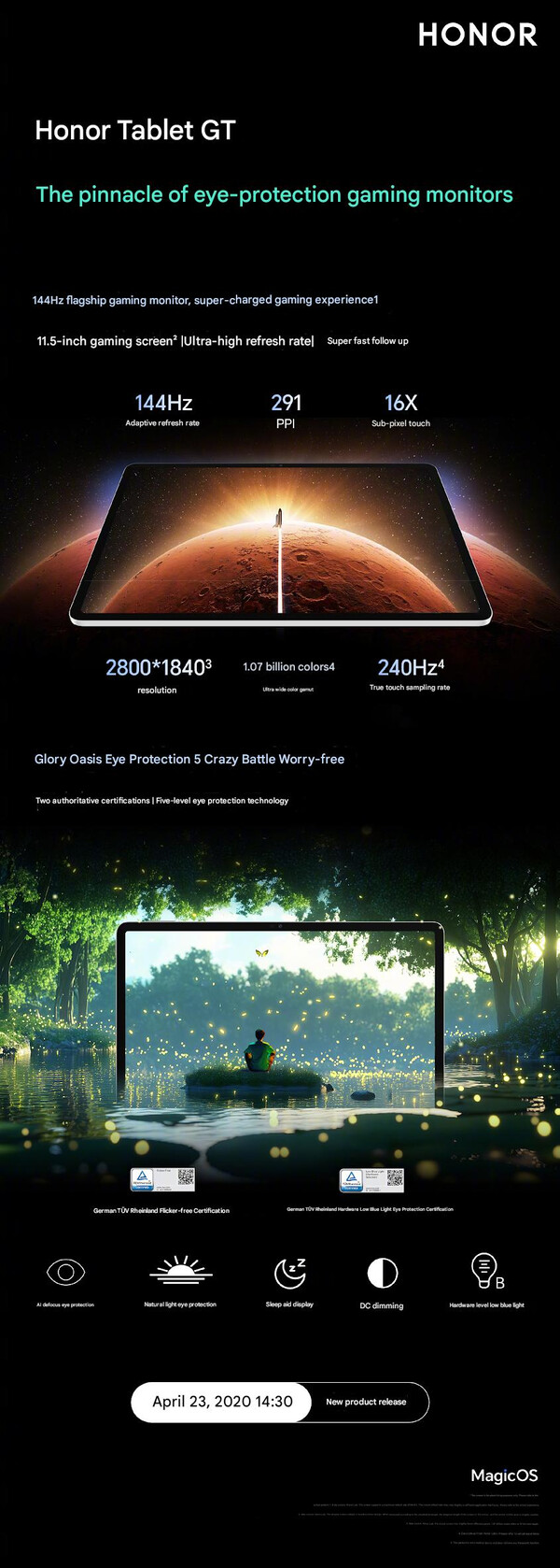 Aan de andere kant krijgt de Pad GT een 11,5 inch beeldscherm dat een native resolutie van 2.800 x 1.840 pixels combineert met een verversingssnelheid van 144 Hz en een aanraaksnelheid van 240 Hz. Gebaseerd op de specificaties die tot nu toe bekend zijn gemaakt, lijkt het erop dat de Pad GT veel van dezelfde hardware bevat als de Honor Pad V9 die we vorig jaar onder de loep namen. Met een MediaTek Dimensity 8350 chipset lijkt aan het roer te staan, zal de Honor Pad GT waarschijnlijk achterblijven bij andere Android tablets zoals de Samsung Galaxy Tab S9 FE (momenteel $419 op Amazon) en de Xiaomi Pad 7 Pro terwijl hij andere tablets zoals de OnePlus Pad 2Honor heeft echter nog niet bevestigd of het van plan is om de Pad GT wereldwijd aan te bieden.