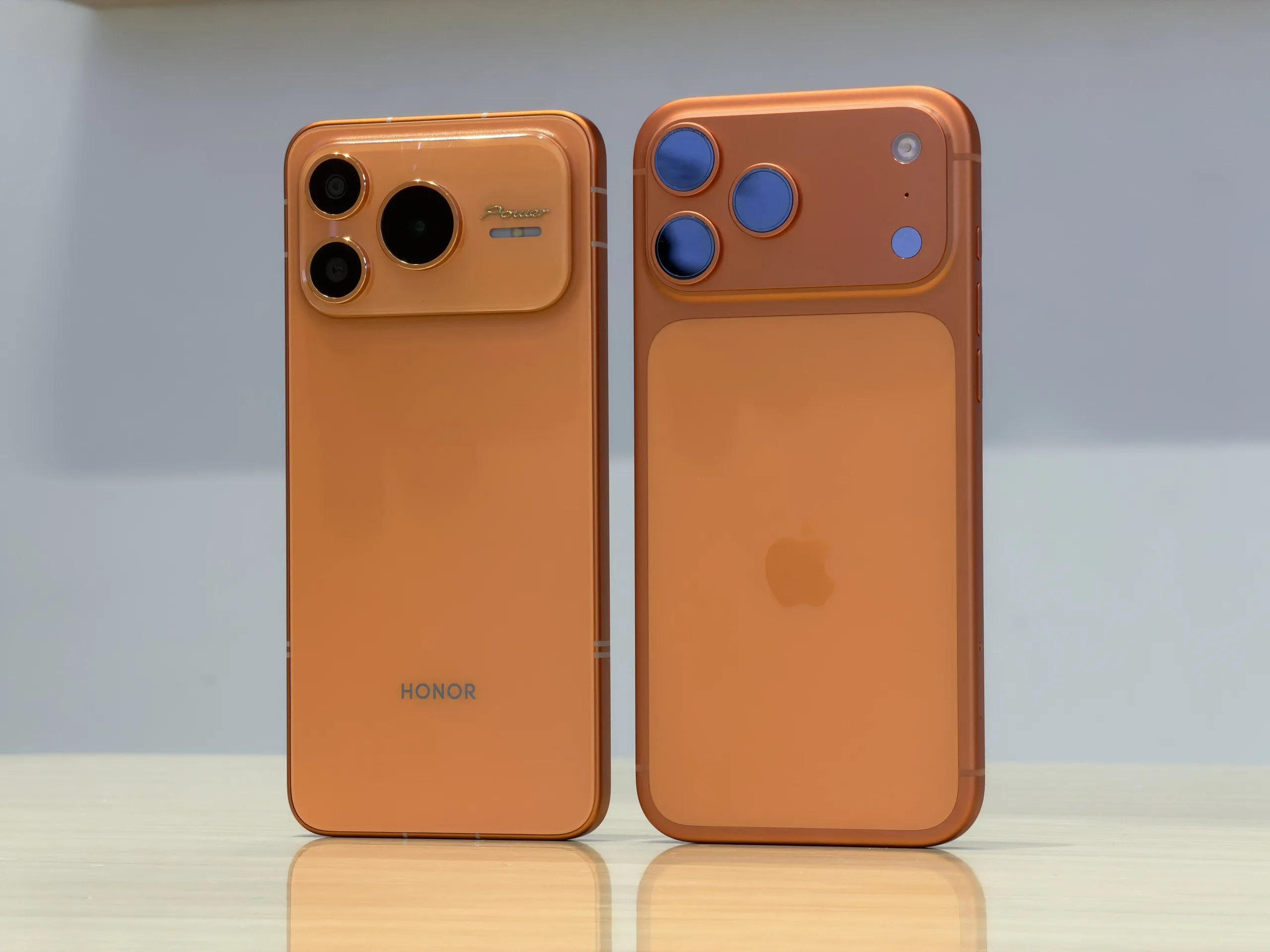 Eén ding moet u Honor nageven: durf loont, want vrijwel geen enkele andere Chinese smartphone uit het middensegment is sinds Kerstmis zo vaak op sociale media en in wereldwijde nieuwsmedia verschenen als de Honor Power 2, die erg lijkt op de iPhone 17 Pro en net officieel in China is onthuld. Vooral de achterste cameramodule op de oranje kleurenoptie lijkt opvallend veel op Apple's vlaggenschip, zoals de hands-on foto's laten zien die de twee anders zeer verschillende apparaten vergelijken. De enige manieren waarop de twee modellen verschillen zijn het tweekleurige uiterlijk van de iPhone, de meer plastic ogende cameramodule met het "Power"-logo, de verschillende lensgroottes en sensor/LED-posities en natuurlijk het Apple logo en Honor belettering