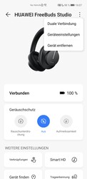 De slijtagedetectie werkt ook alleen met Huawei-telefoons. Maar zelfs als deze is uitgeschakeld, wordt telkens wanneer de telefoon wordt omgedaan een luide detectiemelodie afgespeeld, wat soms vervelend kan zijn. Aan de andere kant is het handig dat twee apparaten tegelijkertijd op de FreeBuds Studio kunnen worden aangesloten.