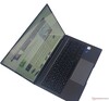 Het toetsenbord heeft een tweestapsverlichting en voldoende grote toetsen met een vrij zachte aanslag en een merkbaar drukpunt. De toetsen worden echter te gemakkelijk getriggerd, wat een iets te sponsachtige indruk achterlaat naar de smaak van onze tester. De toetsaanslag is niet te kort, zeker niet voor een ultrabook. De toetsenbordcover buigt door onder druk en tijdens het typen, wat voor wat minimale ergernis zorgt. De Enter toets rammelt ook een beetje.