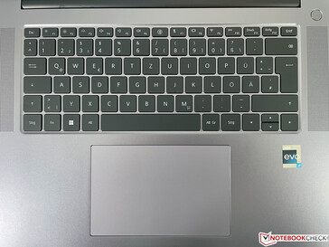 Terwijl de goedkopere MateBook D16 een volwaardig numeriek toetsenbord heeft, blijft Huawei trouw aan de vertrouwde lay-out van de MateBook 16 en houdt het vast aan de plaatsing van de luidsprekers naast het toetsenbord. Er is echter één welkome verandering: de afstand tussen de toetsen is vergroot van 1,3 naar 1,5 mm. Subjectief gemeten is de tactiliteit ook erg goed. Maar net als bij zijn voorganger hebben sommige toetsen de neiging om wat te rammelen en dat vermindert de waargenomen kwaliteit tot op zekere hoogte. De witte achtergrondverlichting met twee niveaus van het toetsenbord gaat niet automatisch aan. De aan/uit-knop is recht boven het toetsenbord geplaatst en dient tevens als vingerafdrukscanner, wat goed werkt.